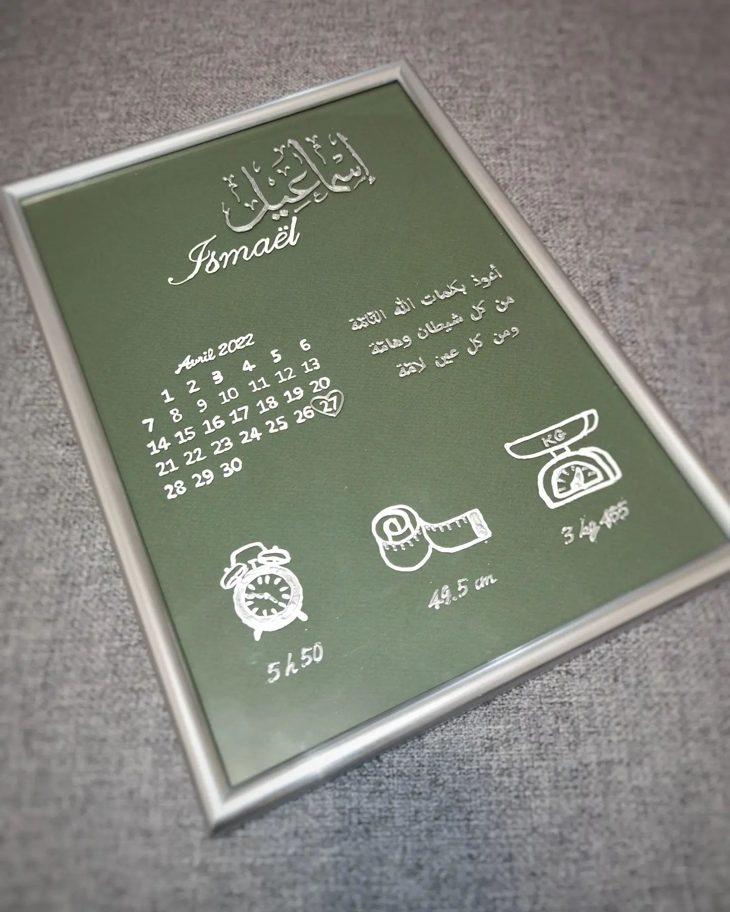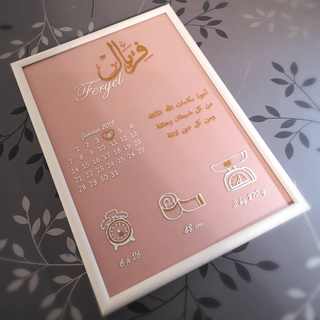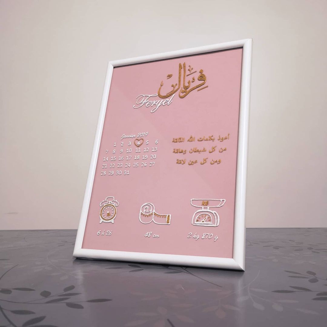 Explorez l’harmonie parfaite entre l’art, la personnalisation et la célébration de la vie. Élevez vos cadeaux de naissance à un niveau artistique avec notre Cadre Personnalisé. Personnalisé pour vous, inoubliable comme ce moment spécial.