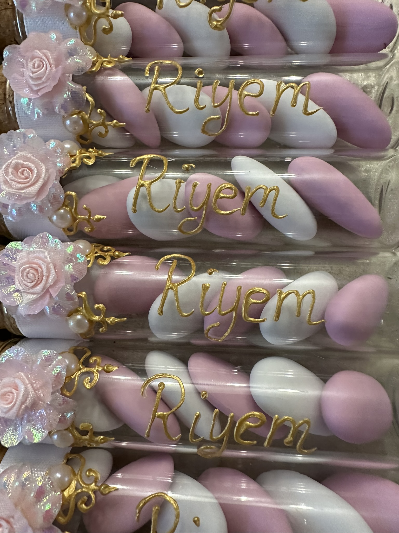 Découvrez nos Fioles à Dragées personnalisables, le choix parfait pour vos événements spéciaux. Chaque fiole est une œuvre d’art en soi, prête à être ornée d’un ou deux prénom(s), ajoutant une touche personnelle et mémorable à vos célébrations.
