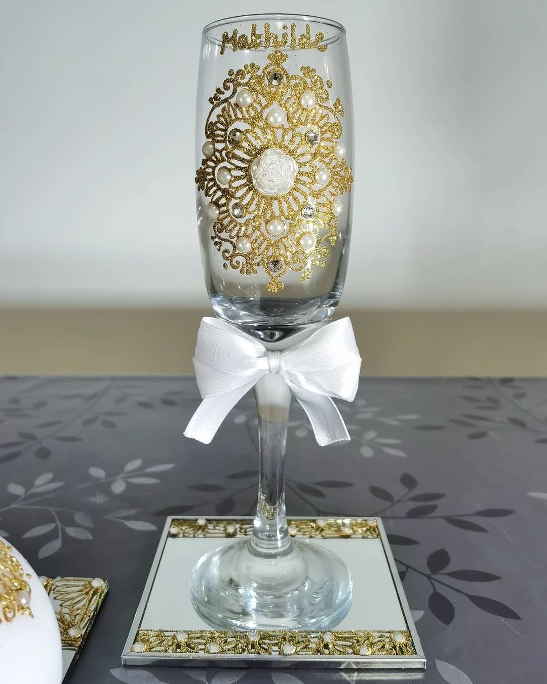 Ces flûtes, bien plus que de simples verres, deviennent une déclaration artistique, immortalisant l’amour dans chaque détail. Laissez votre créativité s’épanouir en personnalisant ces flûtes, ajoutant une touche unique à chaque toast.